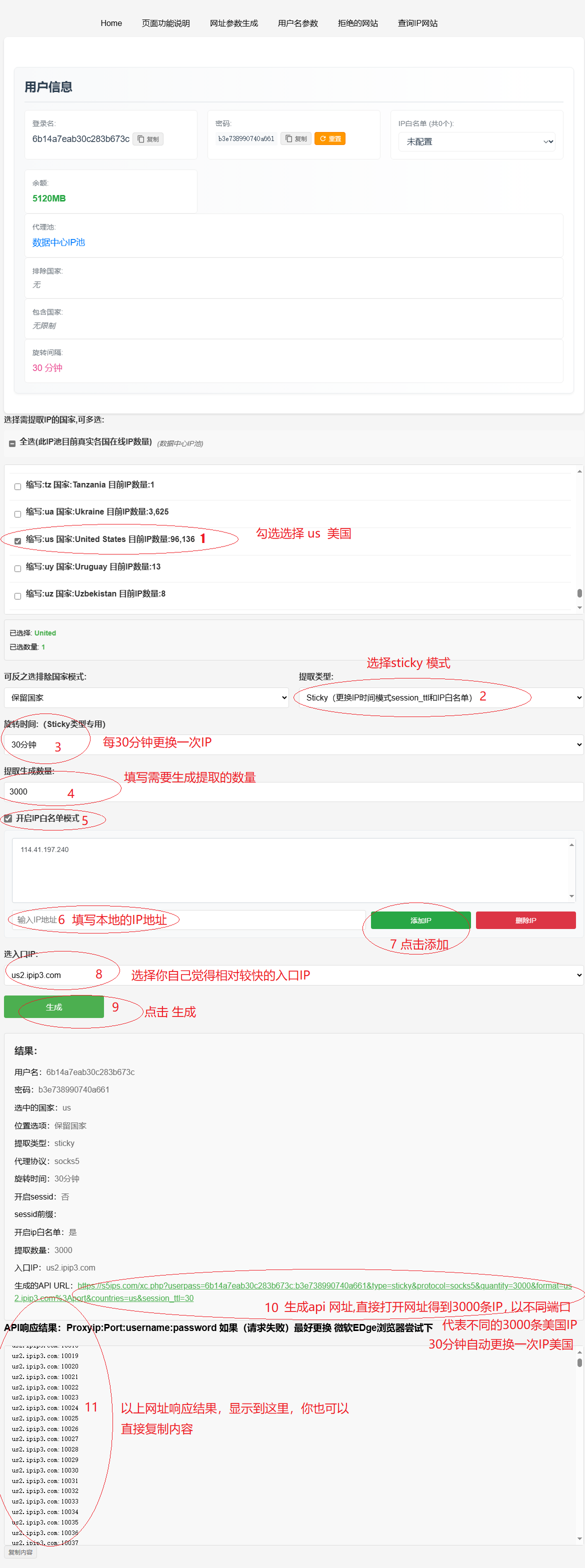 浏览器打开https://paysok.ipip3.com/extensions/proxygbapi/index.php?genkey={用户}